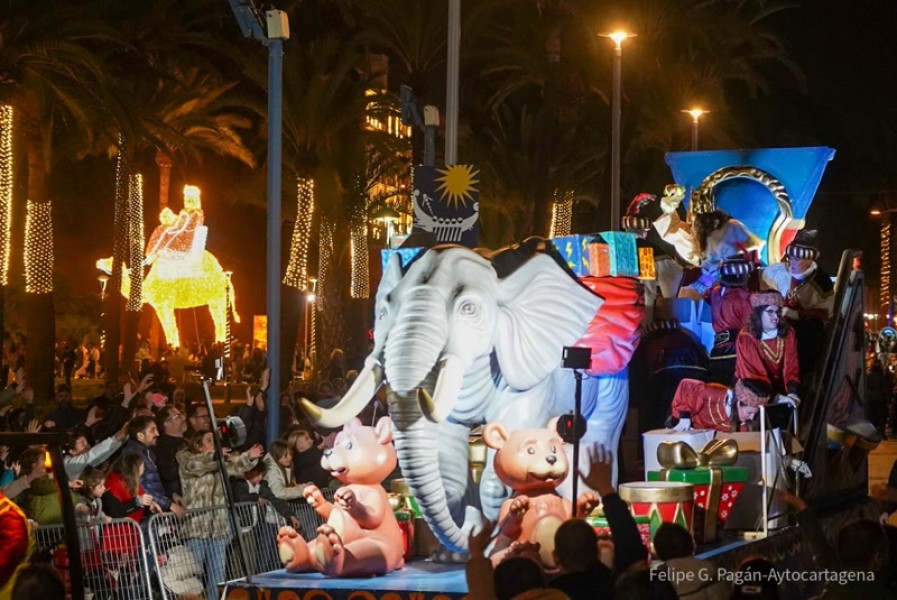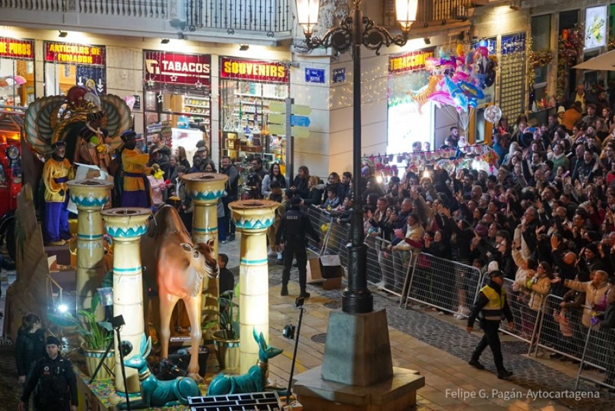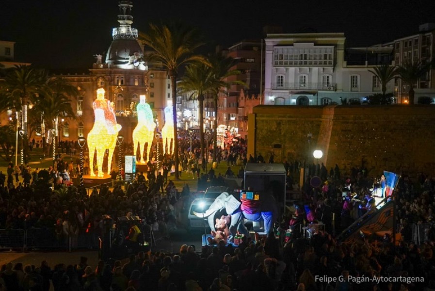La Cabalgata de Reyes Magos en Cartagena pudo completar este sábado los tres kilómetros de recorrido con más de 100.000 personas siguiéndola en la calle. El consistorio ha agradecido el esfuerzo del personal del Ayuntamiento, así como de artistas, actores, músicos y demás integrantes del desfile por su entrega para la realización adelantada del desfile. La celebración del evento tuvo lugar 48 horas antes de lo previsto adaptando también su recorrido habitual.