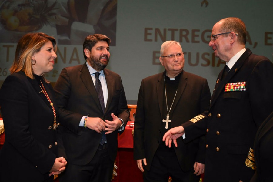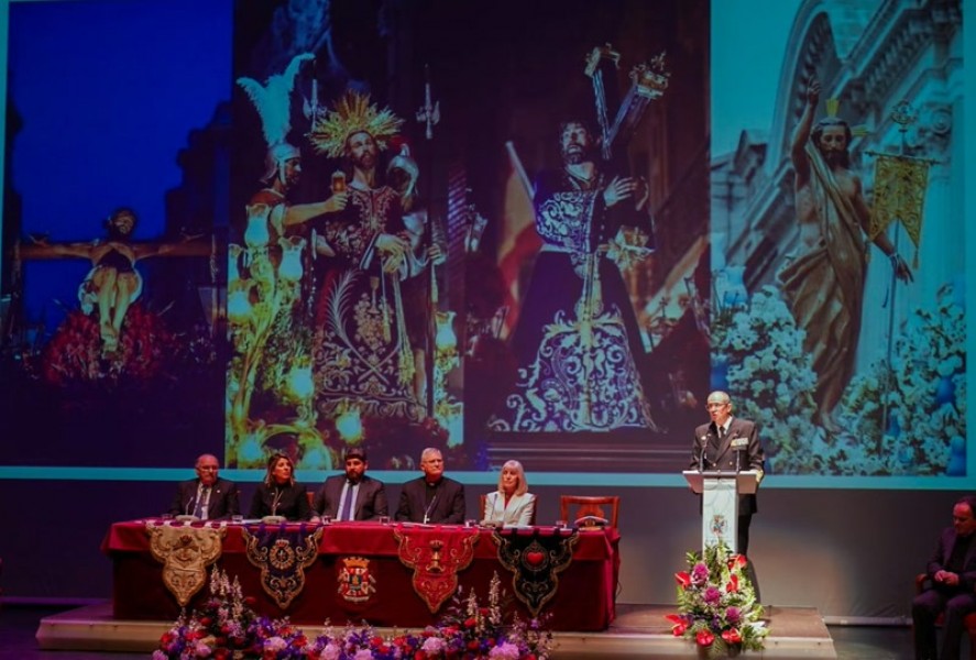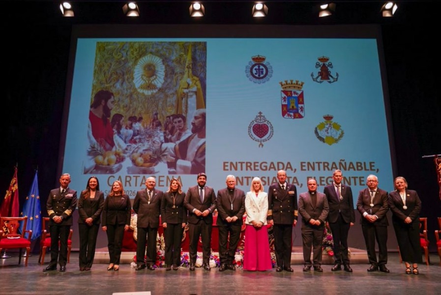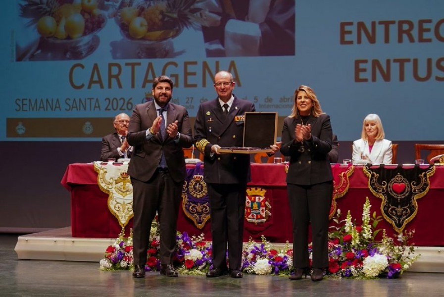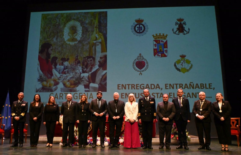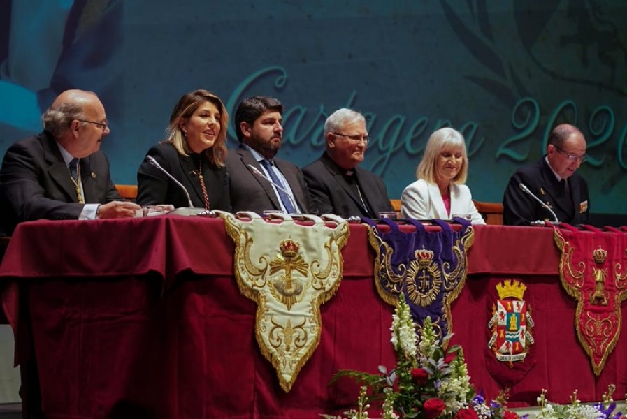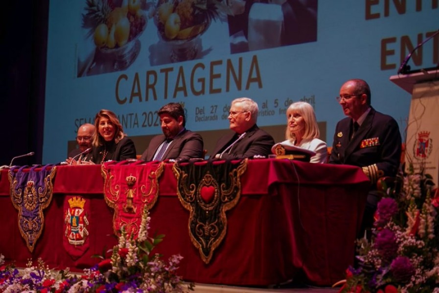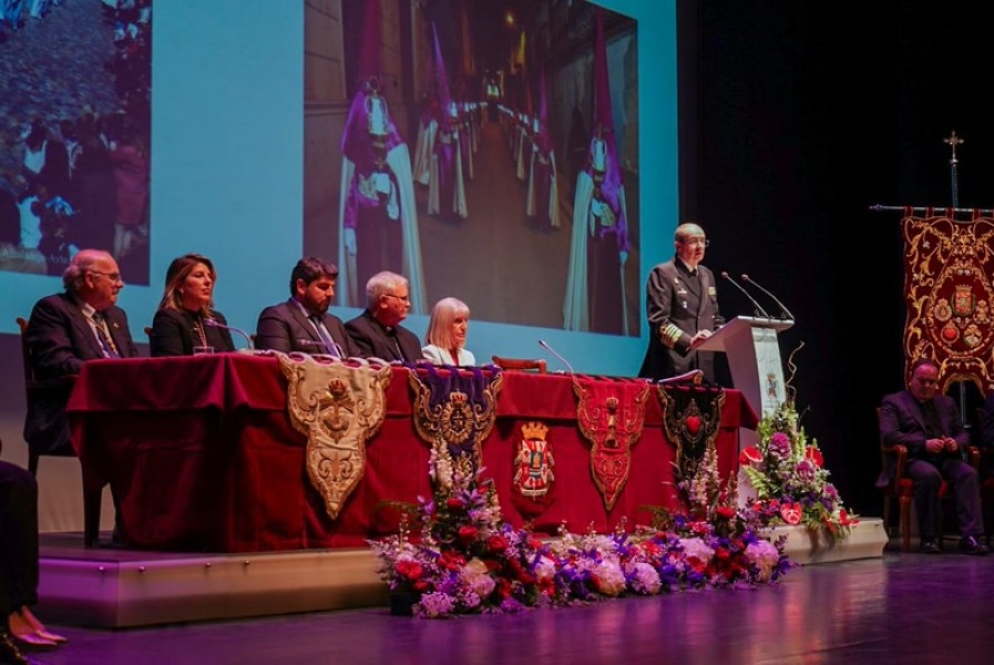 El Auditorio Municipal El Batel acogió anoche solemne acto del pregón de la Semana Santa de Cartagena 2026, a cargo de Pedro Luis de la Puente García-Ganges, almirante de la Armada Española. Presidió el acto el presidente de la Comunidad Autónoma, Fernando López Miras; junto a la alcaldesa de Cartagena, Noelia Arroyo; el Obispo de la Diócesis de Cartagena, José Manuel Lorca Planes; la Nazarena Mayor, Toñy Gabarrón Gilabert; el presidente de la Junta de Cofradías, Javier Pavía Galán; y el propio pregonero. En cuanto a la elección del pregonero de este año, la alcaldesa de la ciudad, Noelia Arroyo, aseguraba que era un acierto de la Junta de Cofradías.
