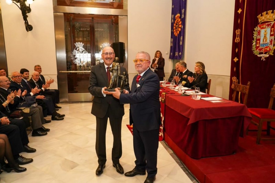 Este viernes, además, el Palacio Consistorial fue escenario del acto oficial de entrega del galardón de Procesionista del Año 2026, concedido a Jesús Muñoz, vinculado desde su infancia a la Cofradía California, donde ha desempeñado cargos de relevancia, como Secretario General y Mayordomo Principal. Muñoz comenzó su singladura pasional en la Agrupación de San Pedro y desde entonces ha estado vinculado a la Cofradía California y del conjunto de la Semana Santa de Cartagena.