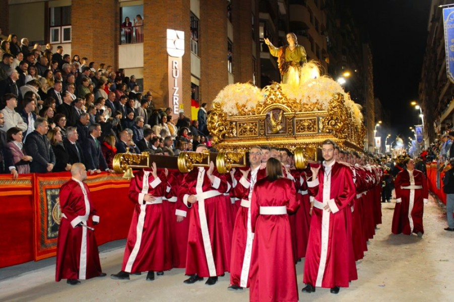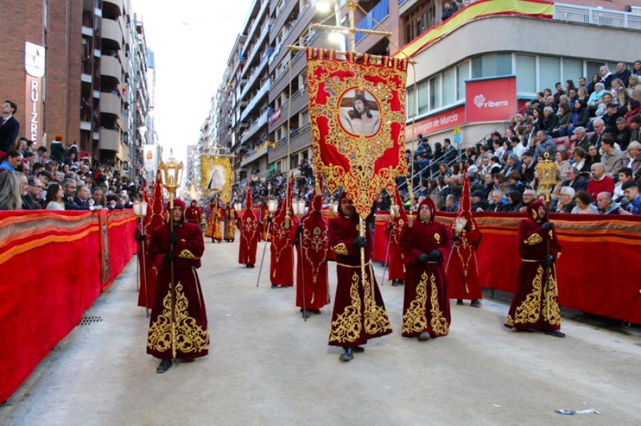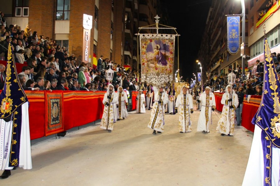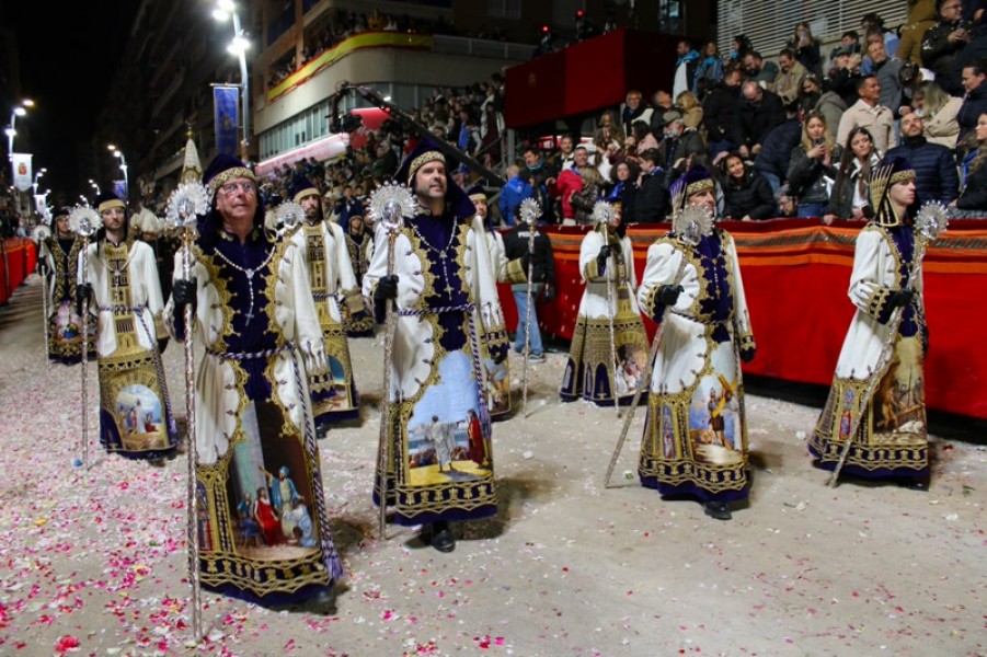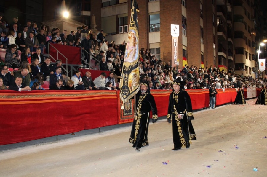 En Lorca, el Viernes Santo unió en la representación del auto sacramental a los Encarnados, Morados, Azules, Negros y Blancos.