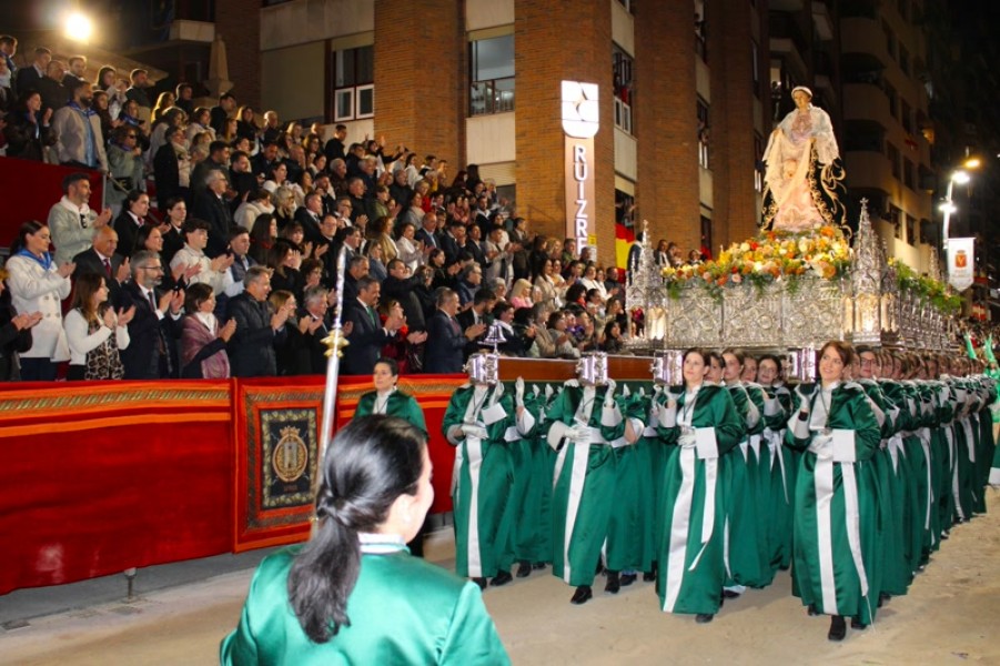 Emoción en la despedida de los desfiles bíblico-pasionales de Lorca. La alegría se entremezclaba ayer con la tristeza mientras los lorquinos lanzaban un último clavel a la Dolorosa, a la Amargura. Una lluvia de pétalos caía al paso de las titulares de los pasos Blanco y Azul que dejaba una alfombra de flores por la que poco antes, reinas y princesas, emperadores y faraones, carros y carrozas, y cientos de caballos se batían en duelo. La ciudad del Guadalentín conmemora la Pasión y Muerte, mañana la Resurrección de Jesús.