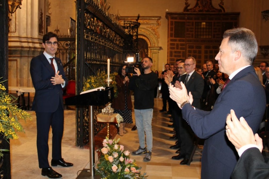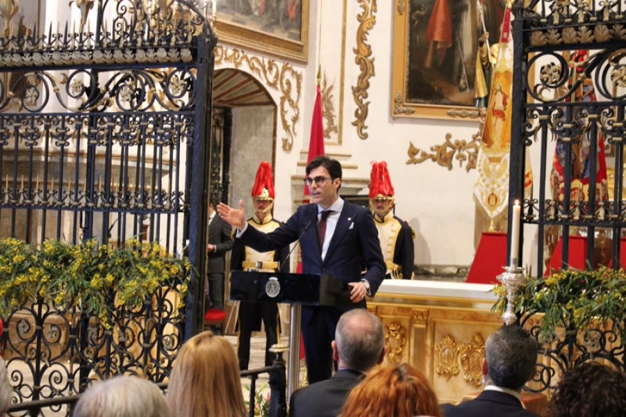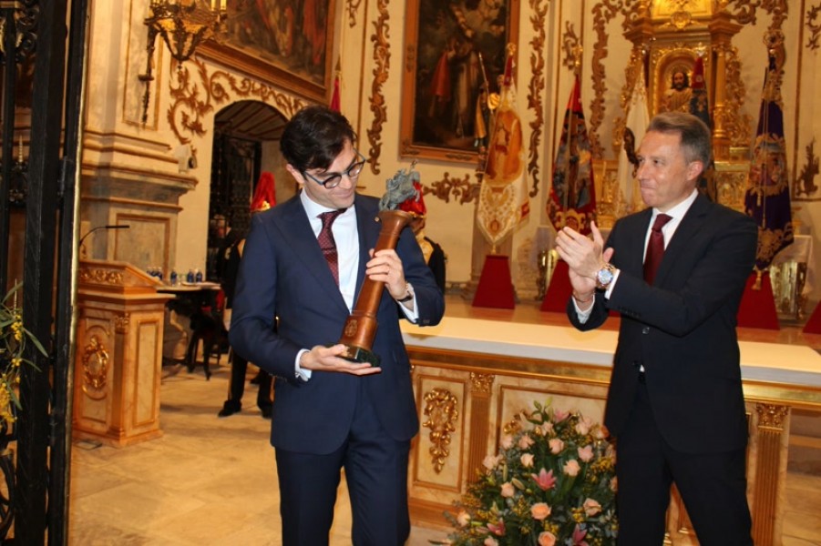 El lorquino ensalzaba la "Semana de Pasión" lorquina con un recorrido por sus desfiles y bordados salpicado con los recuerdos de su niñez. Este fin de semana tiene lugar los 'Anuncios' de la participación de encarnados, azules y blancos en la una Semana Santa que está declarada de Interés Turístico Internacional.