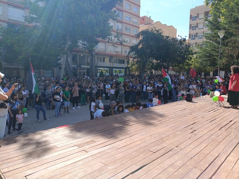 Yecla se suma a las movilizaciones por Palestina con una concentración que reúne a medio millar de personas en una conocida plaza de la localidad. El acto, convocado por el colectivo 'Yecla con Palestina', ha reunido a unas 500 personas. El encuentro ha comenzado con un minuto de silencio en memoria de las víctimas del conflicto y ha continuado con la lectura de un manifiesto. Entre pancartas, banderas y dibujos elaborados por niños y niñas, el ambiente ha sido de recogimiento y compromiso con la causa. La concentración ha concluido con la lectura de versos de poetas locales, otros palestinos y también de Gloria Fuertes.