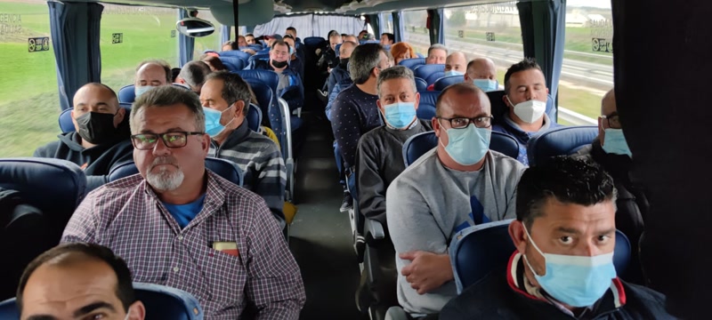 Autobús con agricultores en viaje a Madrid desde Cieza