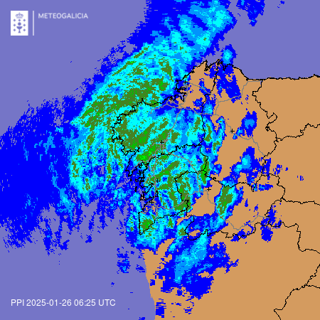 Imagen de radar. Fuente: https://www.meteogalicia.gal/.