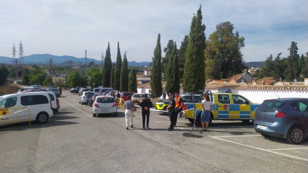 En los cementerios de la Comarca del río Mula, de los municipios de Albudeite, Bullas, Campos del Río, Mula y Pliego, todo transcurre con normalidad, el tráfico ordenado y la seguridad establecida.